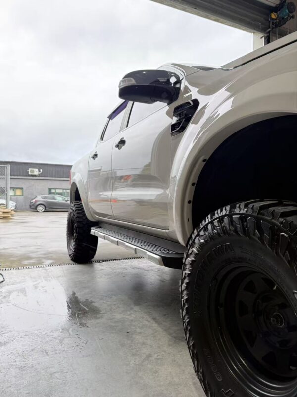 Steel side steps are designed to provide a convenient stepping platform, making it easier for occupants to enter and exit the vehicle. They are particularly useful for taller vehicles with higher ground clearance, as they serve as a stable and secure step for passengers to access the cabin area. Side steps also offer an additional platform for loading or unloading cargo, providing a stable surface for workers to stand on when accessing the roof or reaching into the bed of the Ute.